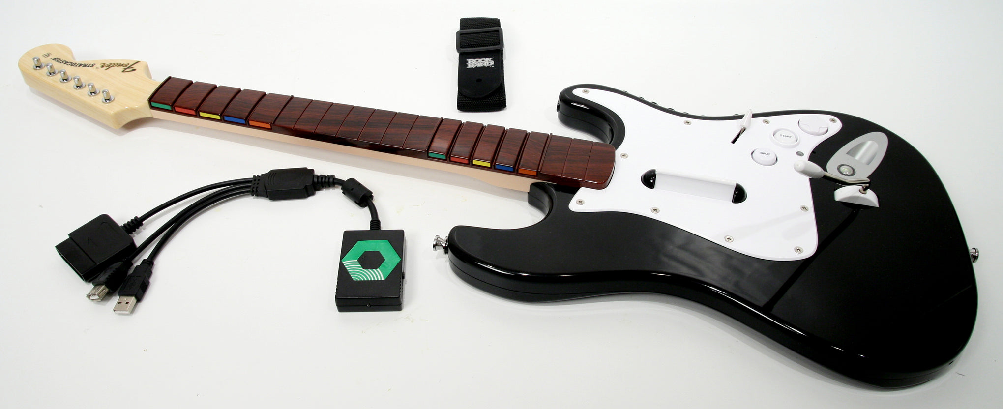 Break free from cables and add another guitar to your band with the Rock Band 3 Wireless Fender Stratocaster Guitar Controller. Upgraded from the original, notable improvements include faster, quieter fret buttons which promote the feel of actual guitar frets and allow sliding chords plus advanced Overdrive deployment. Featuring an additional set of fret buttons on the base of the neck, now you can finger tap through the speediest solos without the need to strum.