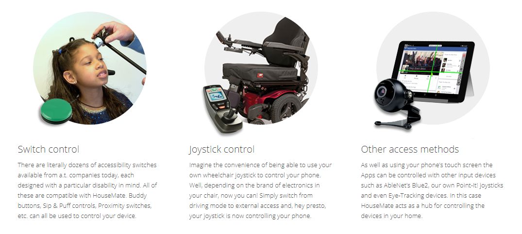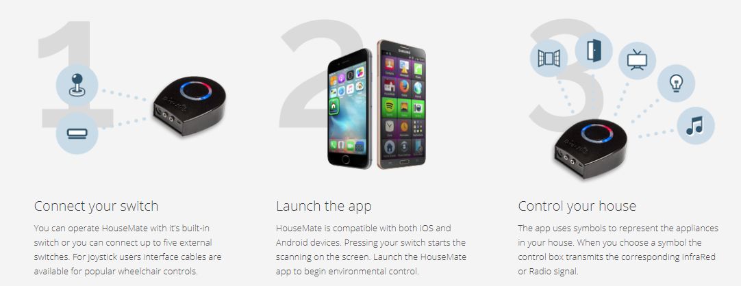 - Housemate Bluetooth Ability Switch & Digital Joystick Interface with Learning Infrared ECU Capabilities and auxiliary Ability Switch Output for Nurse Call, Intercom, Door Openers, & more