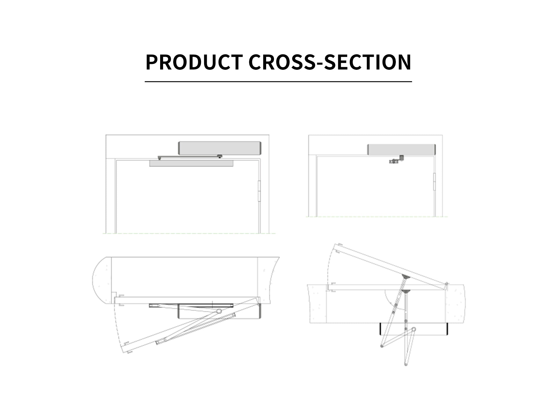 1. Install the Base Bracket: Securely mount the base bracket to the door frame or wall above the door opening using appropriate fasteners. Ensure it is level and aligned with the door's swing path.