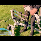 VersaLifts are a perfect companion to Broadened Horizons' very popular, proven, and patented Comfort Carrier Manual Transfer Sling Seat that since it's 2005 debut remains recommended by Craig Hospital to every quadriplegic patient flying home, countless airline personnel working with people with disabilities in airports, Creating Abilities for canoeing and kayaking, and hundreds of enthusiastic and disabled travelers.