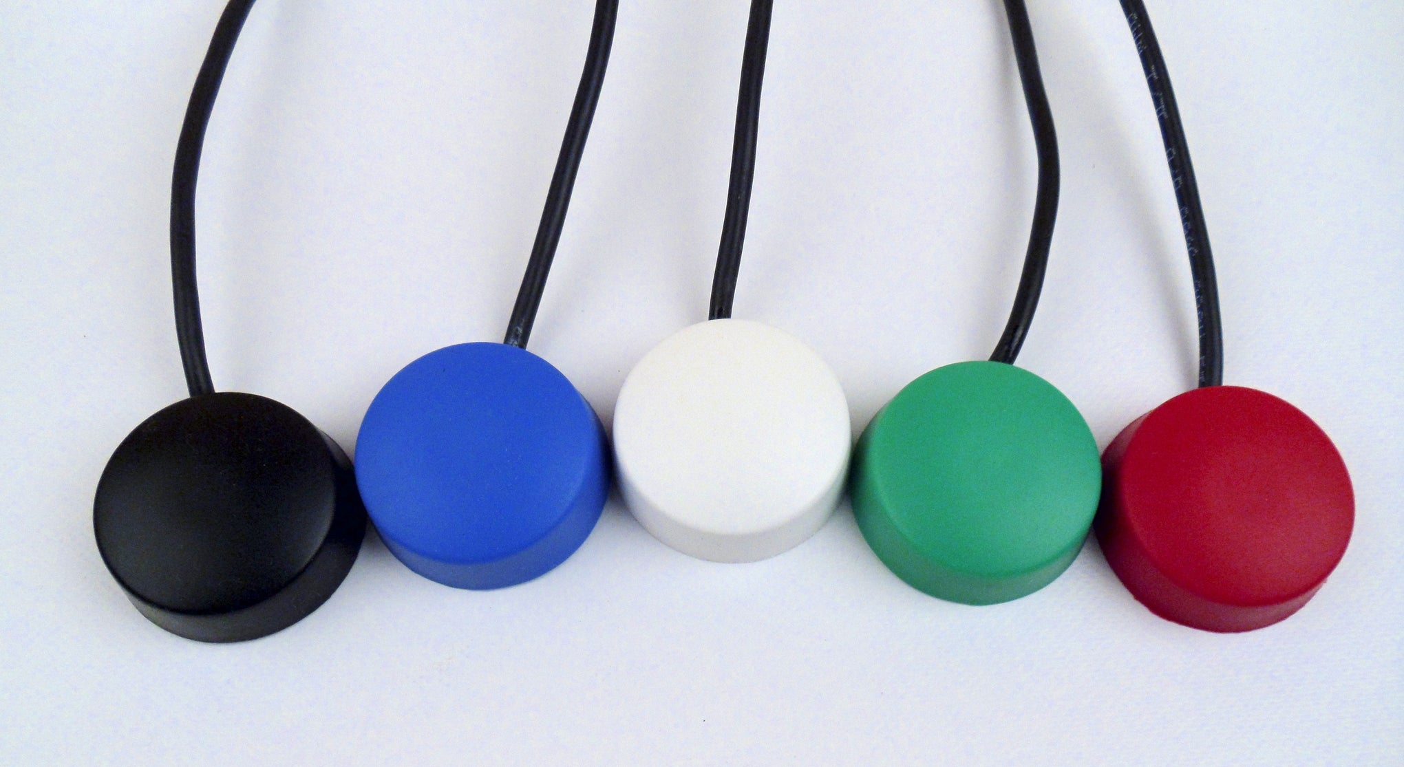Highly sensitive with a slightly domed top yet super durable and waterproof. Place it ANYWHERE even as a foot switch. Available in Blue, White, & Yellow.