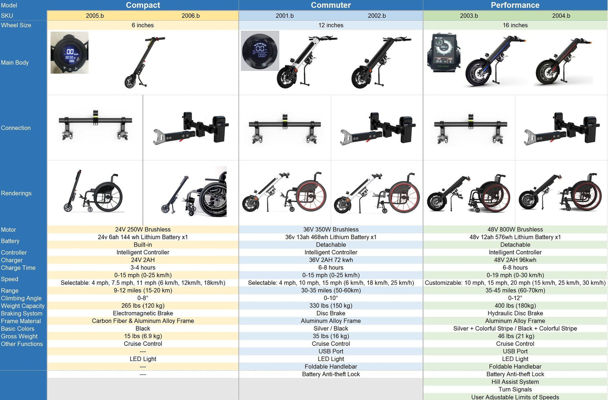 | 6" 24v 250w | 12" 36v 350w | 16" 48v 800w 30km/h |