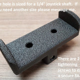 The Joystick Handle is designed with a flexible shaft that will fit tightly on any 3/16” (5 mm) or 1/4” (6mm) diameter steel joystick stem 1" or longer (hole is 2" (51mm) deep).
