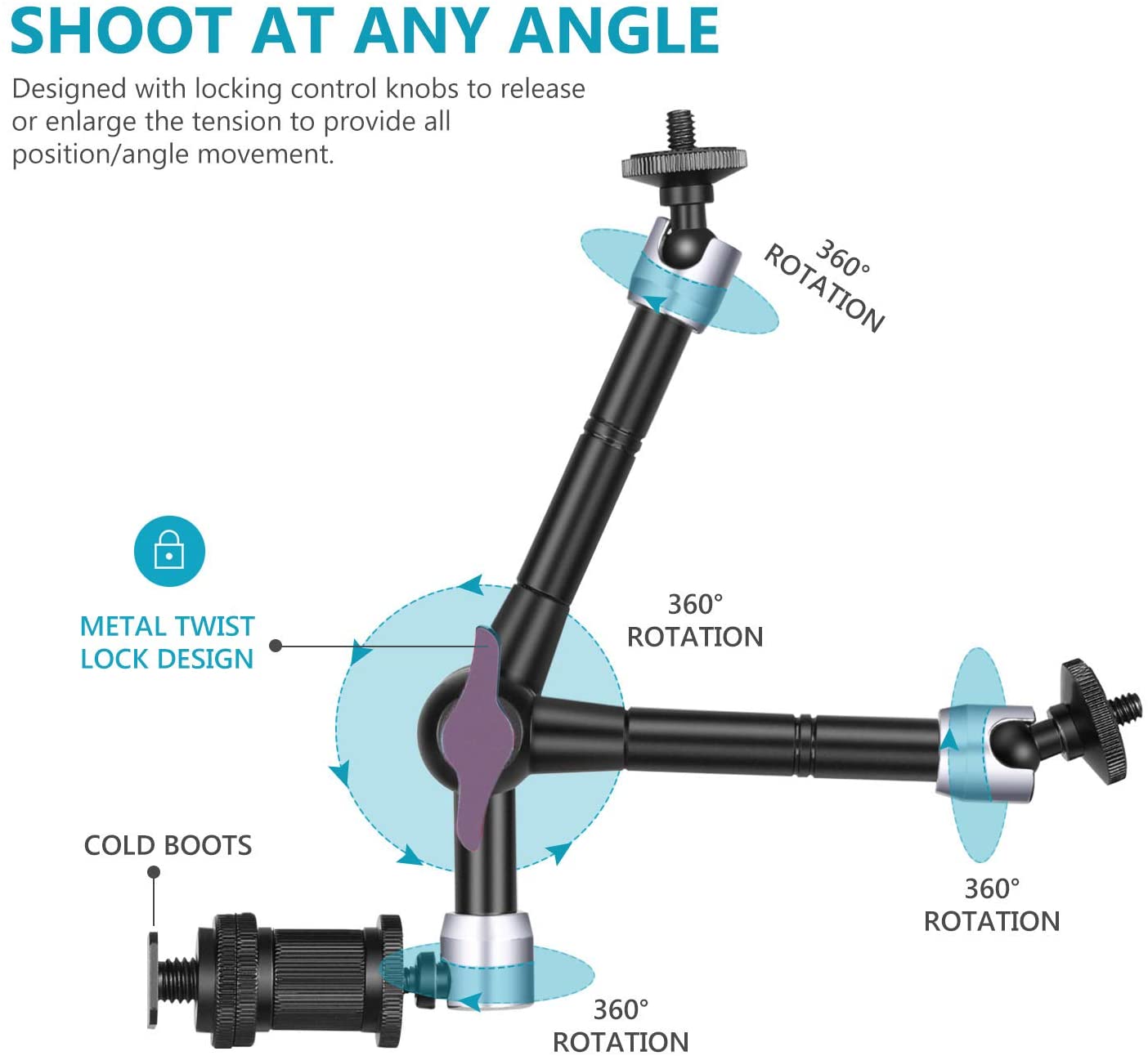 - Enhance your setup with additional components like the 3rd Arm Jointed Mount, which features a 2'' x 1.8'' Top Plate and a 9'' Post Middle Section for extended reach and adjustability.
